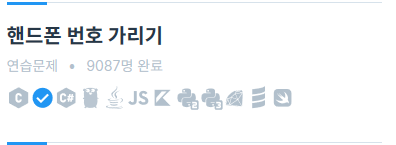 이 문제는 휴대폰 뒷자리 4개를 제외한 모든 숫자를 '*'로 변경해야한다. 가장 쉽고 빠른방법은 문자열 크기를 알아내고