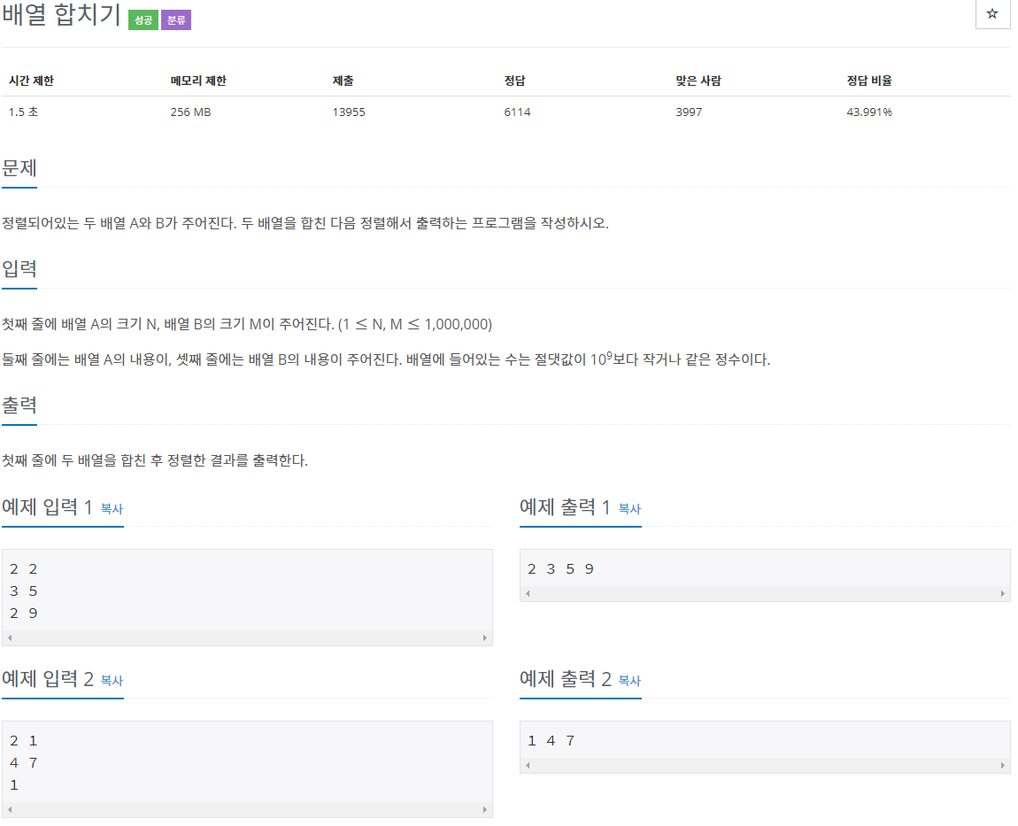 문제 링크: 11728번: 배열 합치기 (acmicpc.net)