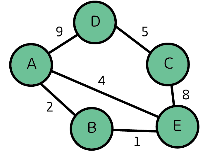예를 들어 A에서 E로 가는 경로 중 최단 경로는