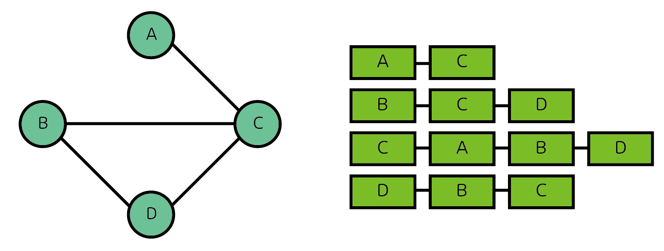 - 인접 리스트(adjacent list) 기반 그래프 연결 리스트를 활용