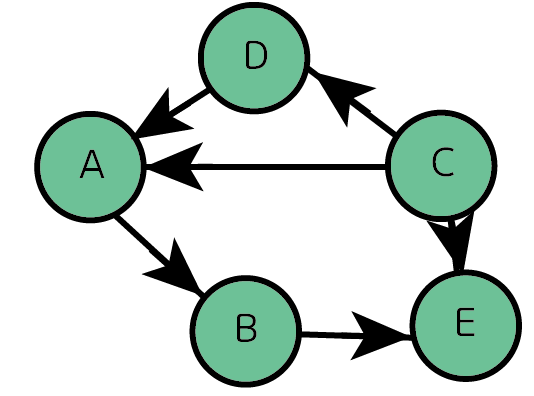 무방향 그래프와 다르게 A에서 C로 가는 간선만 표시를 하였다. 차이는 이것이 전부이며 무방향 그래프와 다르게 대칭을 이루지 않는다.