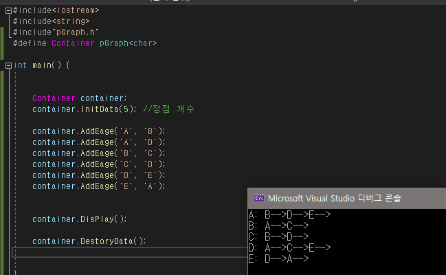 인접 리스트를 사용해서 그래프를 구현하였다. 탐색은 전에 구현했기 때문에 연결된 노드만 출력되는 정도에서 마무리를 하였고 리스트에 사용된 연결 리스트는 연결 리스트(Linked List)에서 작성하였다.