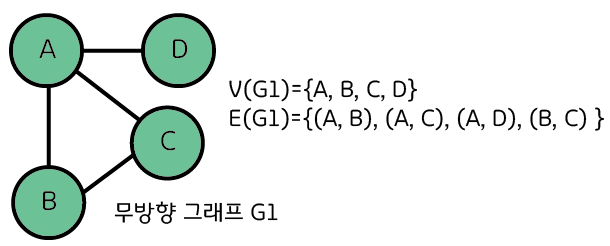 그래프는 정점과 간선으로 이루어지므로, 다음과 같이 정점의 집합과 간선의 집합으로 나누어서 표현이 가능하다.