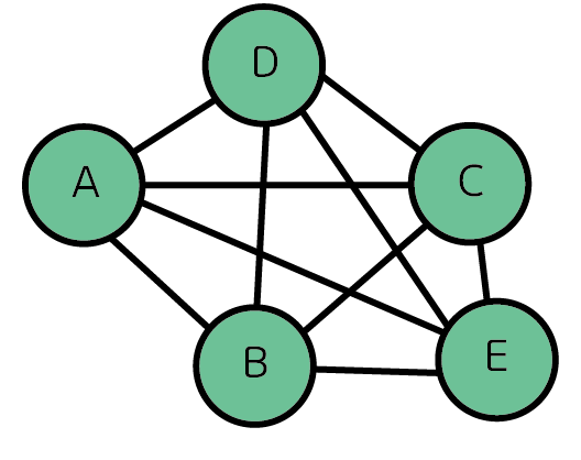 완전 그래프란 각각의 정점에서 다른 모든 정점을 연결한 그래프를 뜻한다.
