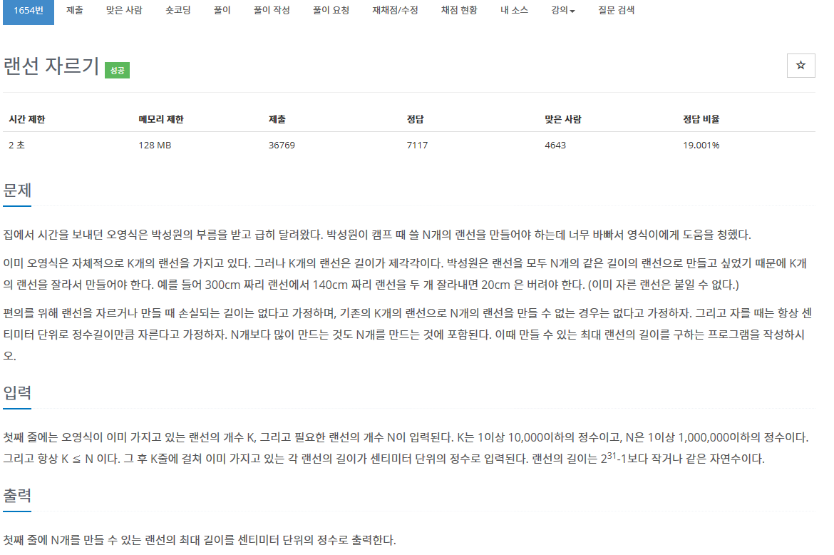 문제 링크:https://www.acmicpc.net/problem/1654