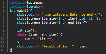 루프는 스트림 상태가 EOF가 될 때까지 입력 스트림 반복자를 사용해서 값을 모두 읽어서 더한다.