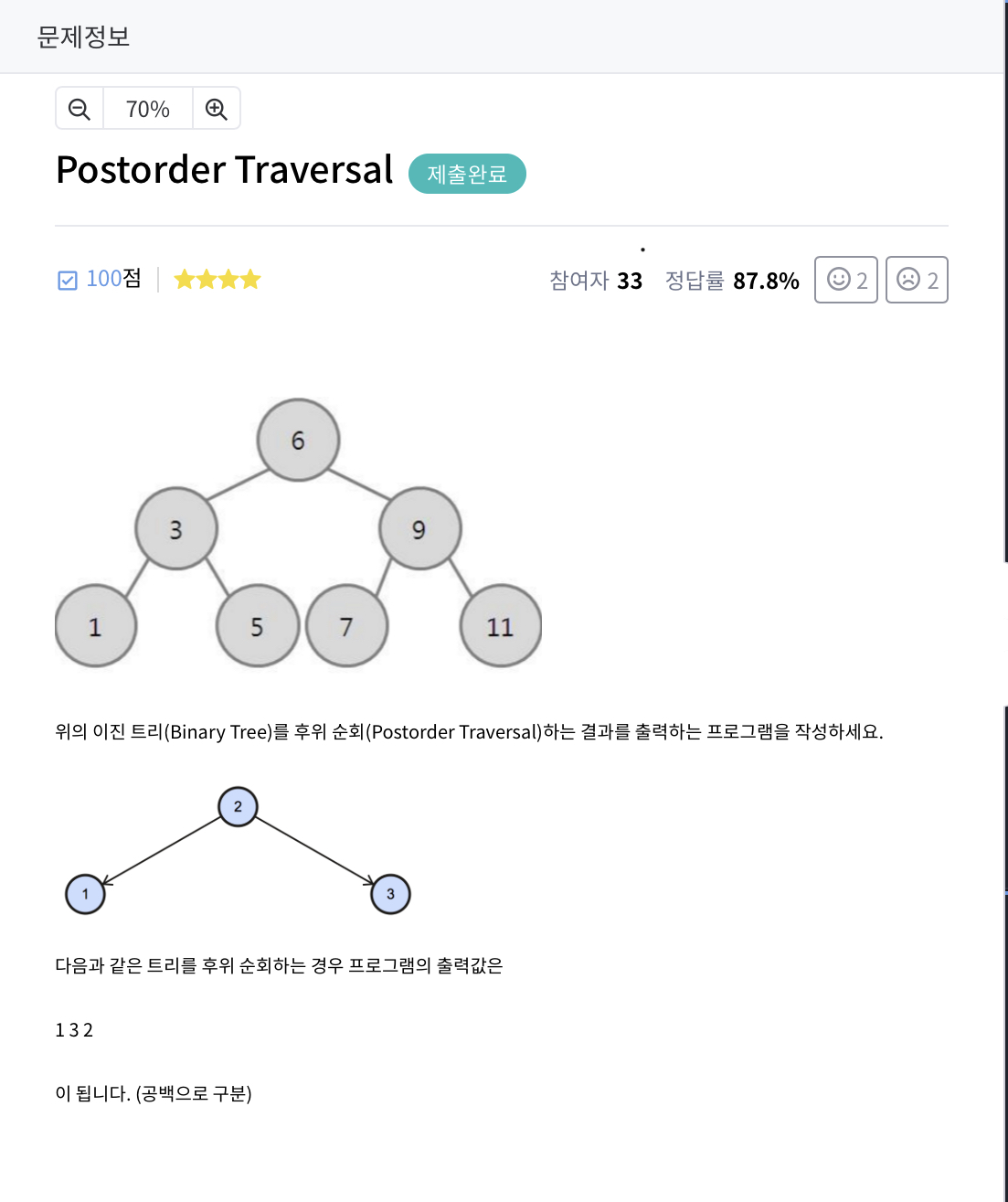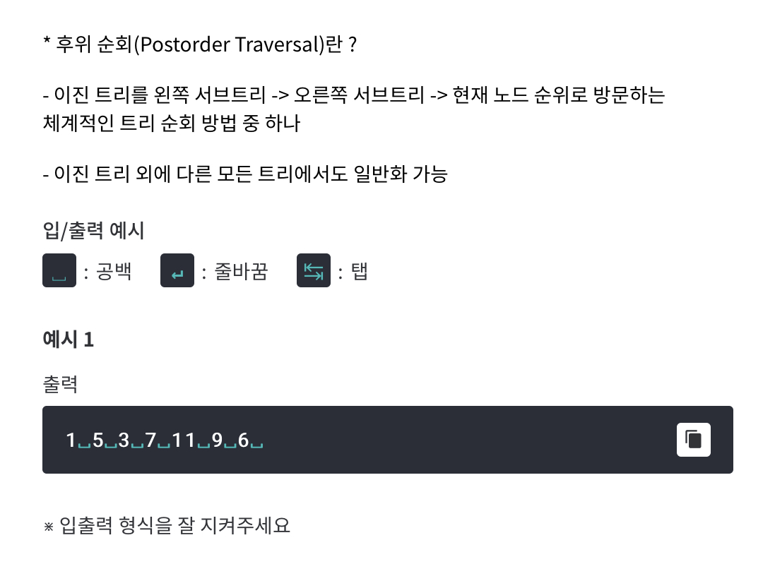 문제 링크: https://level.goorm.io/exam/43133/postorder-traversal/quiz/1