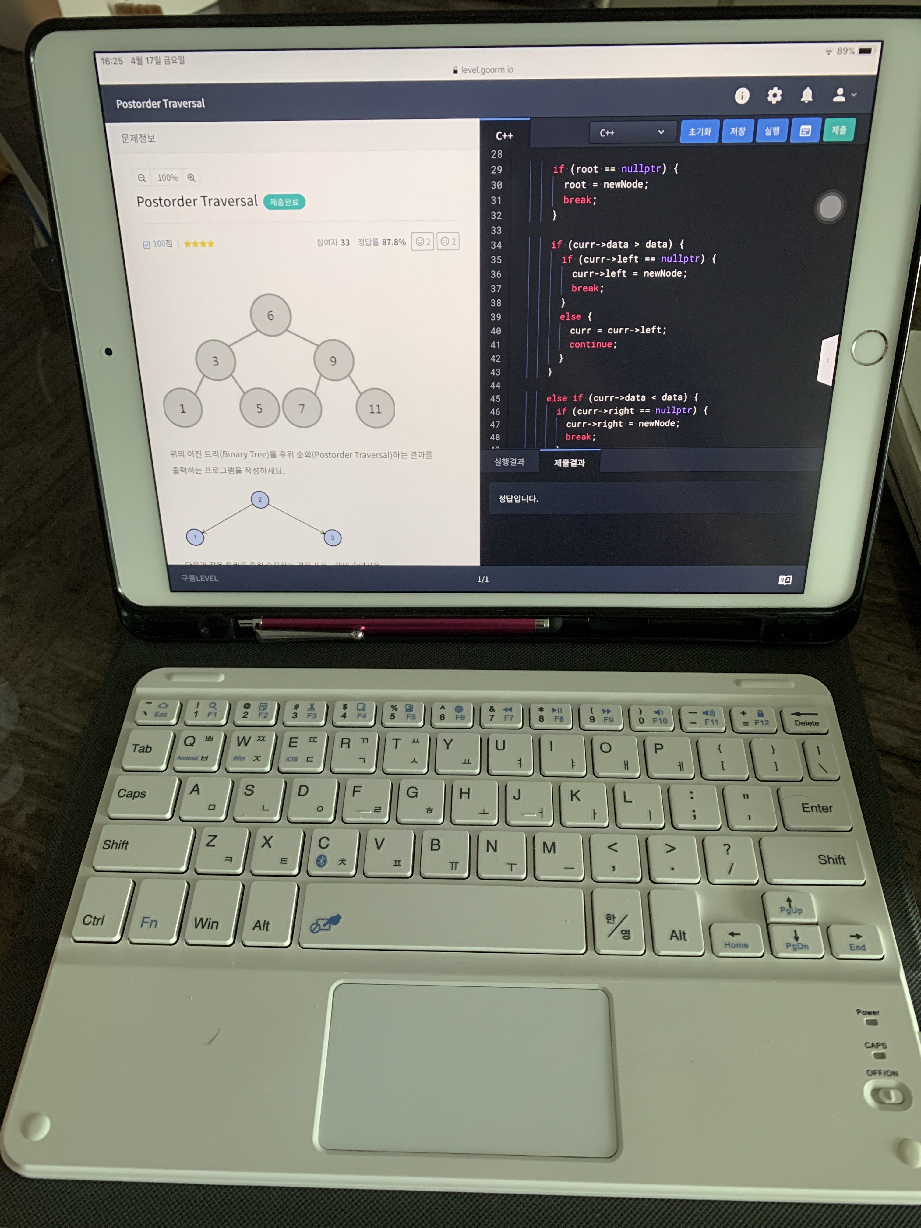 처음으로 아이패드와 웹 IDE를 사용해서 풀어본 장단점은 다음과 같다.
